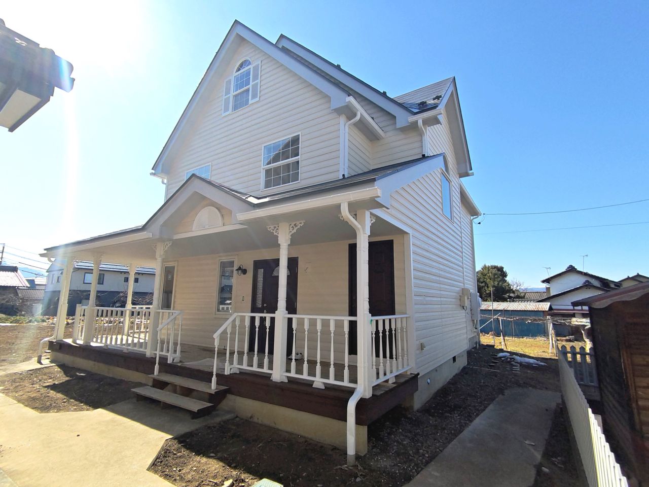 ★『須坂駅』まで500m徒歩7分★ツルヤ須坂西店まで600m徒歩8分 三角屋根と広いウッドデッキの有る西洋風の住宅です。吹き抜けのリビング 4LDK+納戸の間取り 収納充実 都市ガス 閑静な住宅地